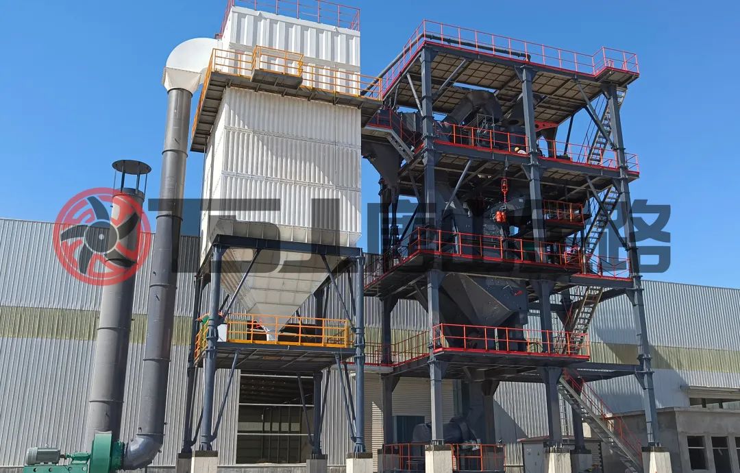 選粉完成后分離出的0.075mm以下的石粉直接進(jìn)入儲存運輸系統(tǒng)中的石粉倉中進(jìn)行儲存。生產(chǎn)系統(tǒng)中所有易產(chǎn)生揚塵的地方均設(shè)置負(fù)壓收塵點,通過除塵器進(jìn)行集中收塵。